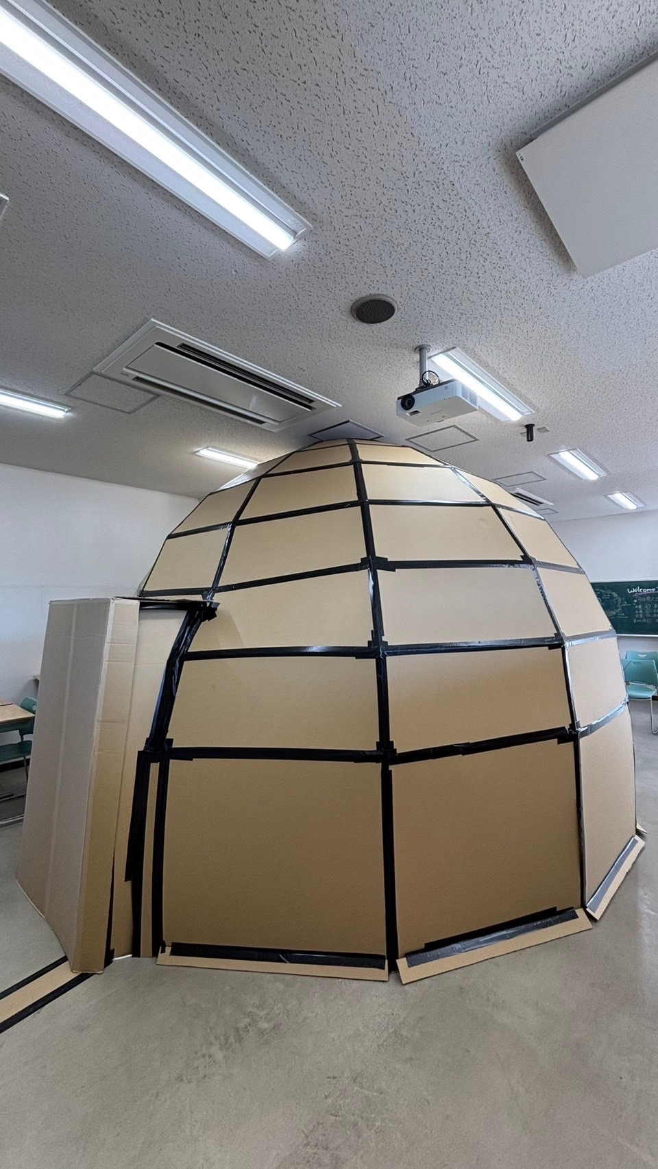 体育館をオレンジ色の光で